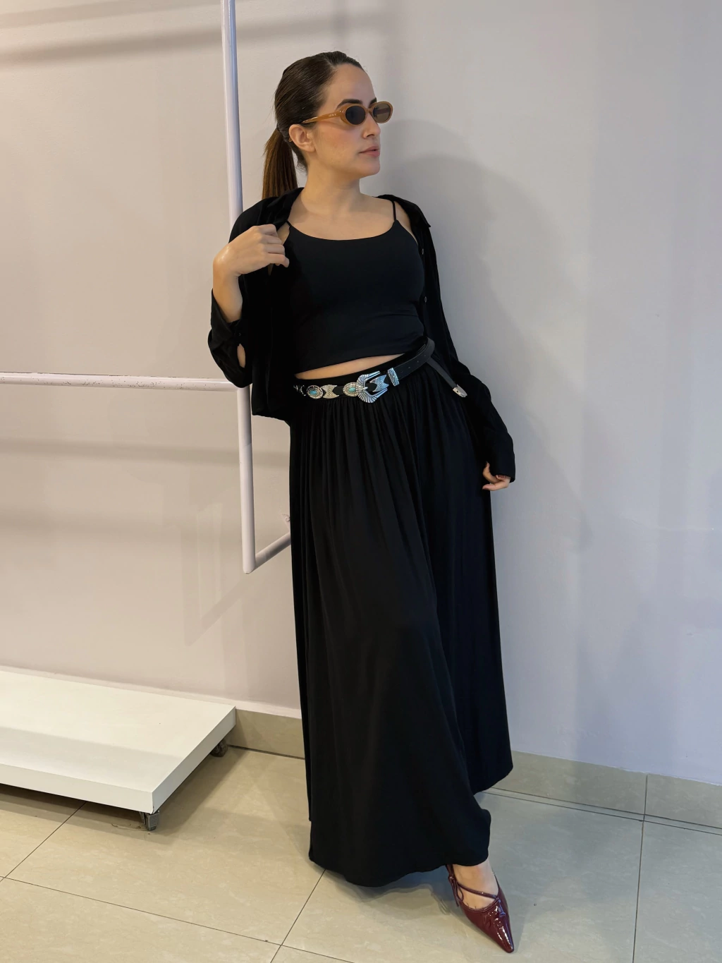Nossa Saia Classic é feita em Viscose Saejada (100% viscose) — um tecido leve, respirável e com caimento encantador, ela traz um toque retrô com frescor moderno, ideal para compor produções delicadas, femininas e cheias de personalidade.