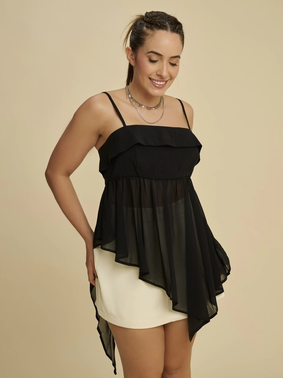 A barra reta e o caimento estruturado criam um visual moderno, enquanto o comprimento curto traz frescor e leveza — perfeito para dias quentes, passeios e produções casuais com um toque premium.