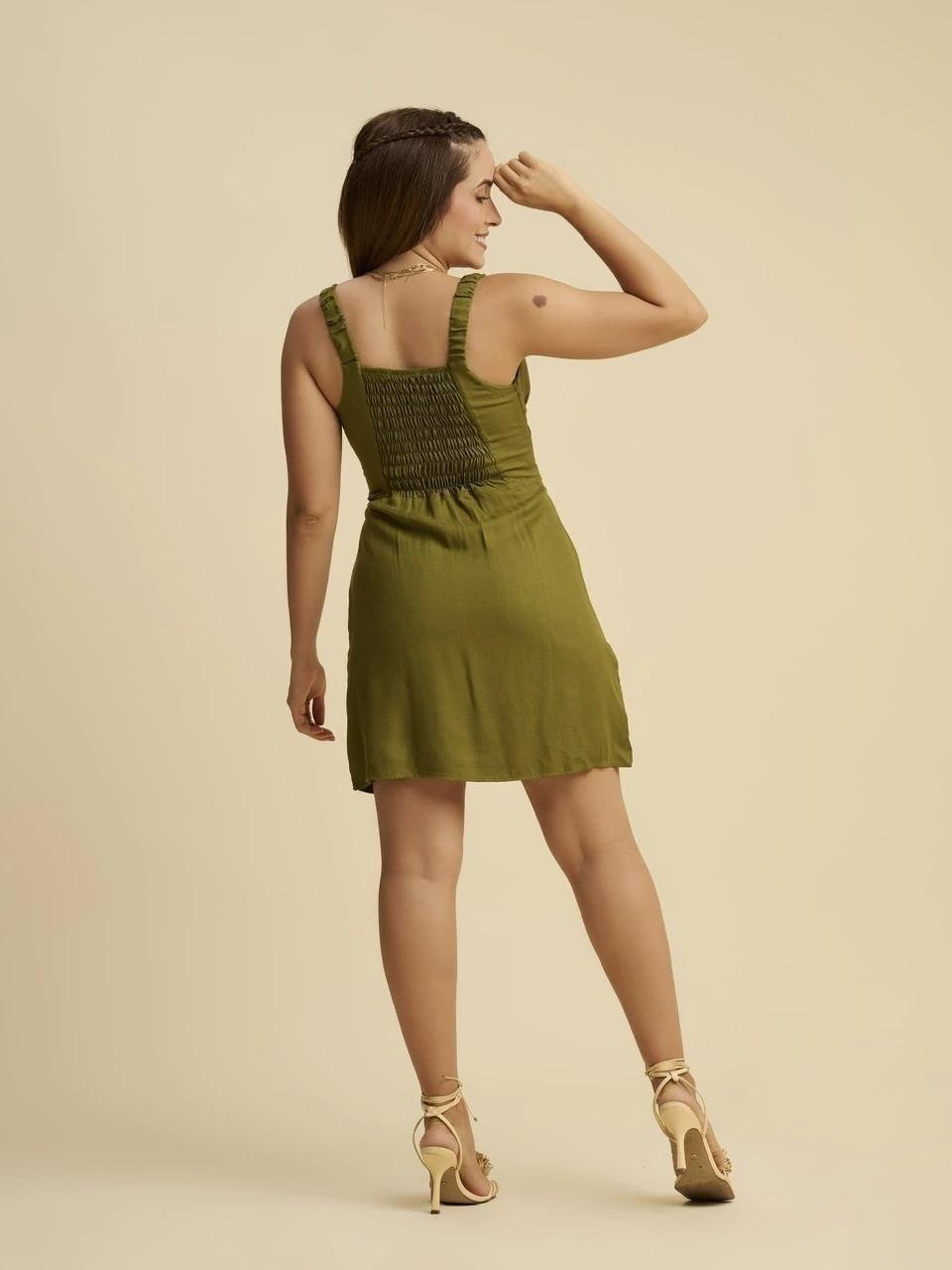 O busto tem detalhe franzido com amarração central, trazendo um toque romântico e ajustando perfeitamente ao corpo. As alças largas com efeito drapeado dão charme extra e sustentação. Nas costas, o lastex garante elasticidade e encaixe impecável, valorizando a silhueta com suavidade.