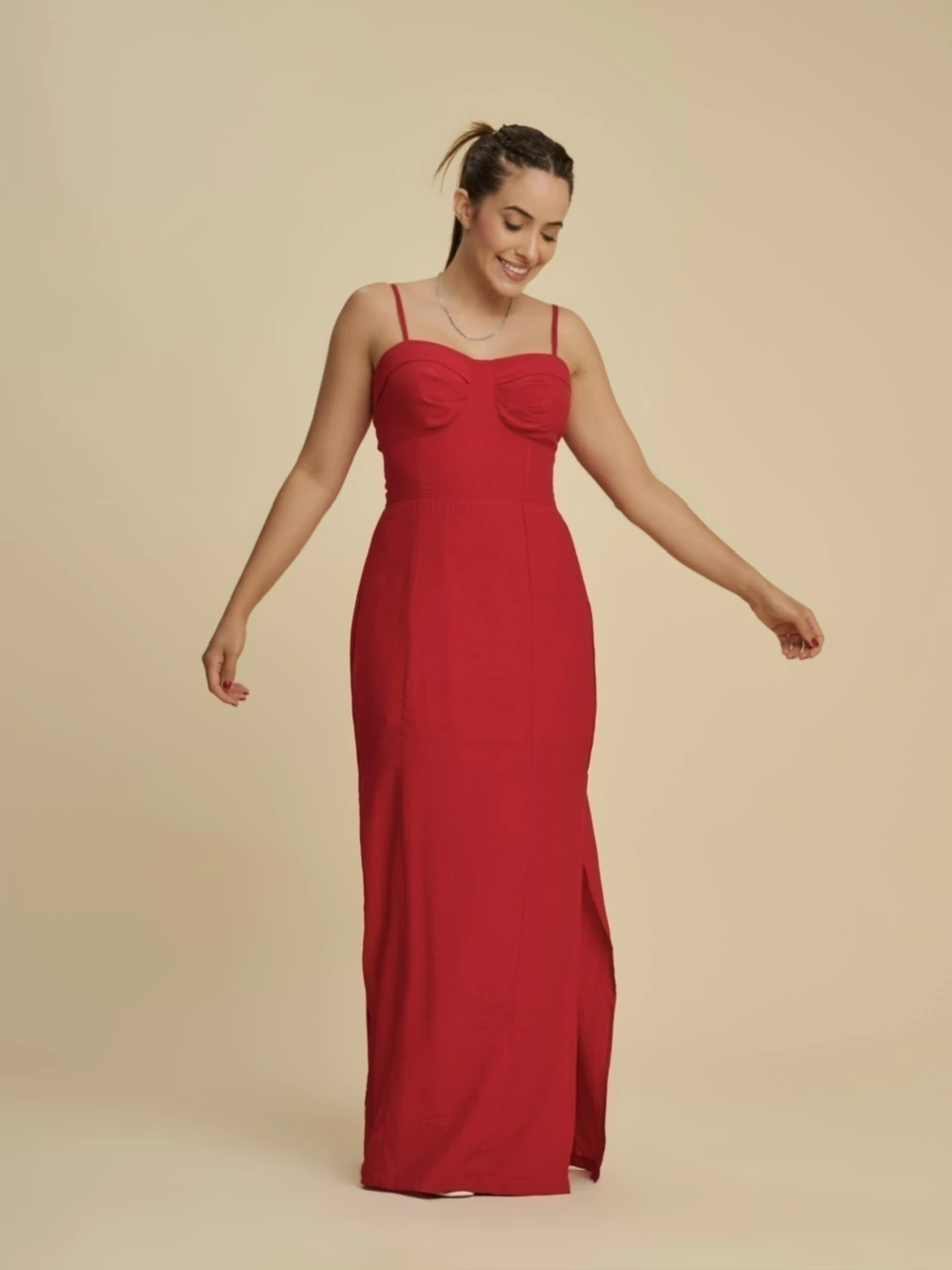 O Vestido Sossego é a escolha ideal para quem deseja unir leveza, feminilidade e impacto em uma única peça. Com modelagem acinturada, comprimento longo e caimento fluido, ele valoriza a silhueta de forma natural. O busto estruturado realça o colo com delicadeza, enquanto as alças finas trazem um toque romântico.